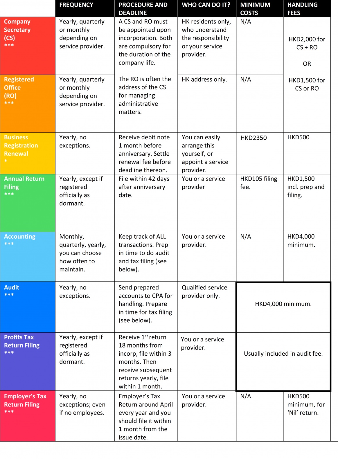 There’s no denying the feeling you get when you are starting your very own business. You’ve got your idea, and you want to get it setup right away. Great! But, before going any further, we’d like to give you a piece of advice; don’t get caught up in the excitement. Setting up a company is a long-term responsibility. Can you afford to incorporate and maintain an HK company? Once set up that is not the end of it! Don’t get us wrong; we don’t want to dampen your plans, but having seen many an entrepreneur make this mistake we simply had to write about it. We already touched on this topic briefly in our 6 Tips You Should Keep In Mind When Incorporating A Company, tip no.2: Remember, you are required to manage the company after it is incorporated! But now we’re going to elaborate on this point so you can better understand just how much time and money it takes to maintain a company.